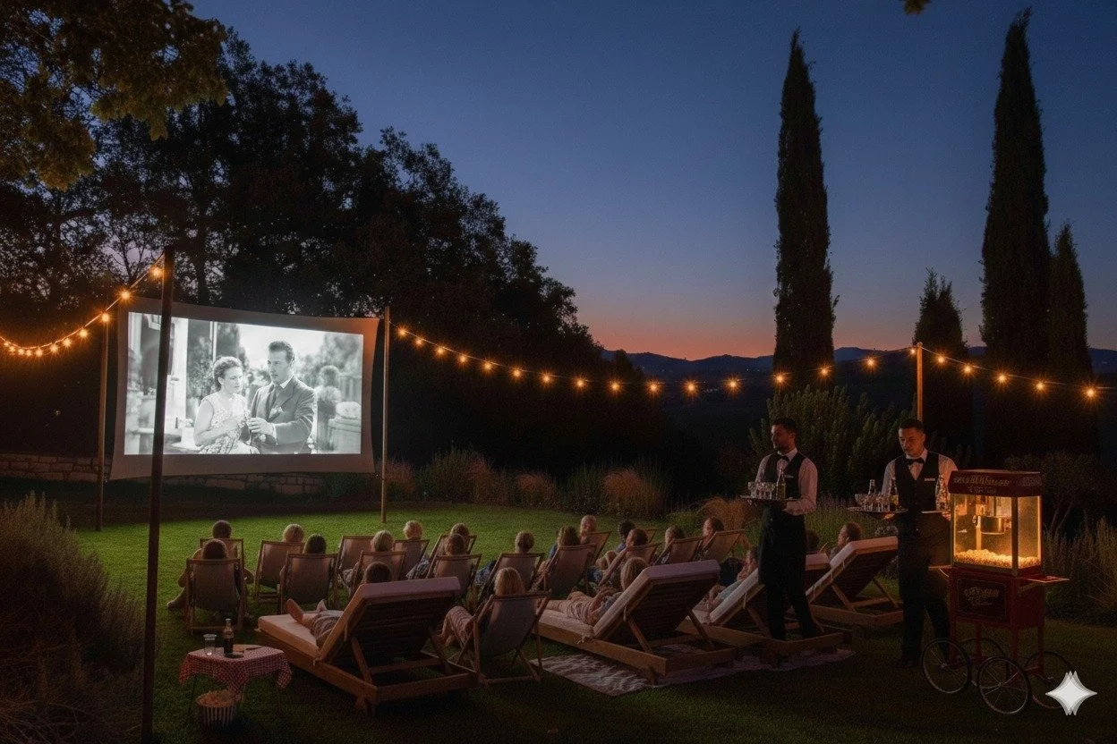 As twilight deepens, the Italian gardens by the pool transform into a fascinating open-air theater. Framed by the lush forest and the evening breeze, settle in for a curated selection of films celebrating the Golden Age of Italian cinema. This experience pays homage to the vintage charm of the 1950s and 60s, bringing to life the iconic stories and timeless elegance that defined a legendary era of filmmaking.